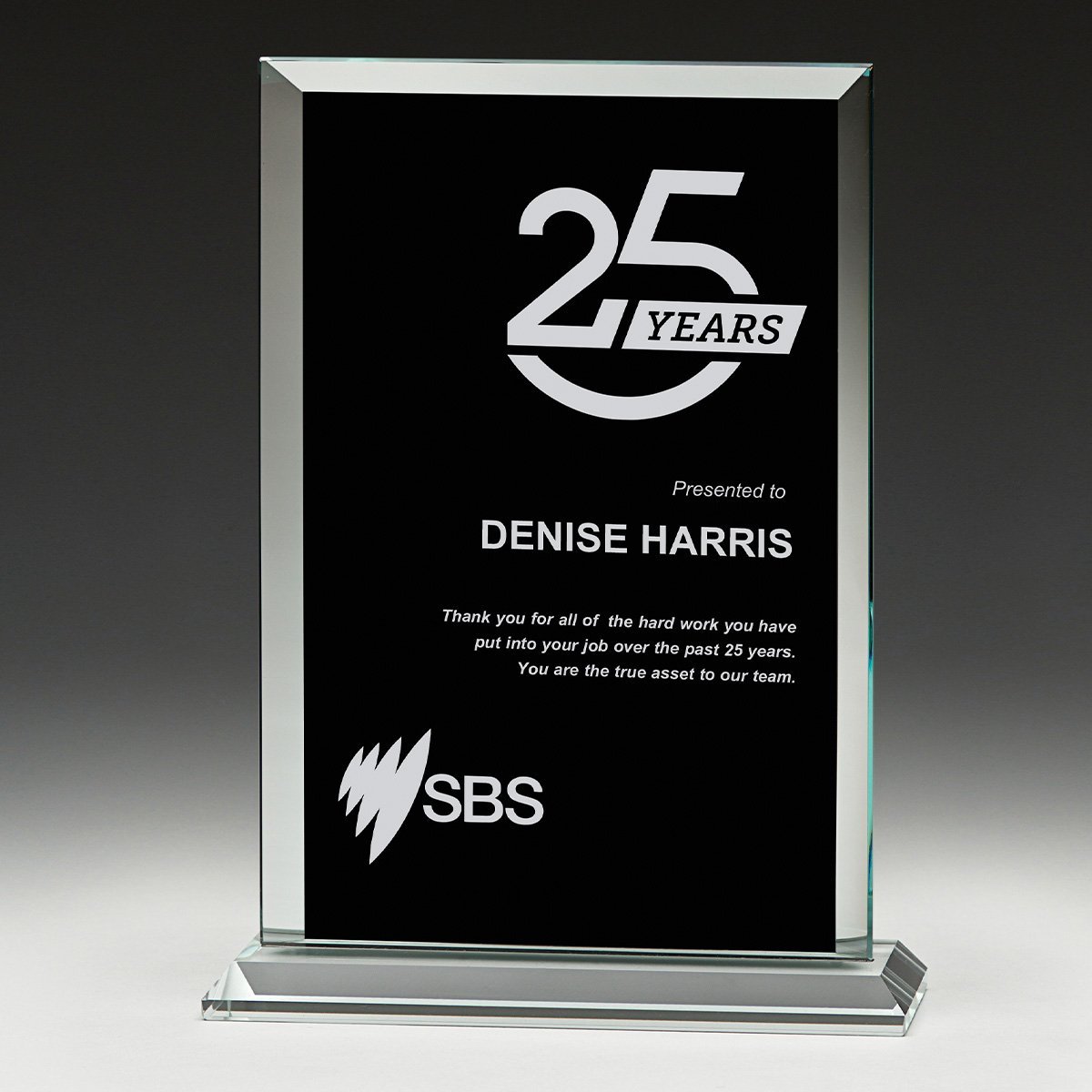 The Glass Black Billboard award series presents a modern, commanding design and the black panel element of the award highlights your engraving requirements. The impressive design, and vibrant blue colour, may be perfectly suited to your awards event. Available in 2 sizes – supplied in Gift Box.