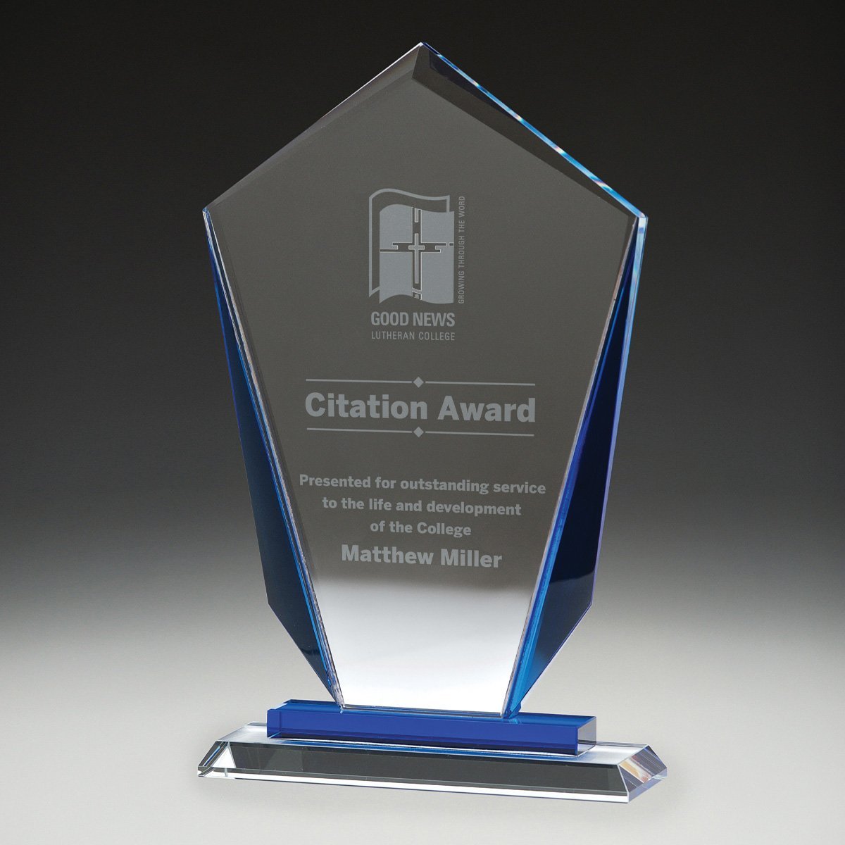 The ‘Blue Keystone’ features the classic clear and blue glass combination that allows for an appealing design over a range of 3 sizes. Supplied in presentation gift boxes to complete your awards event.
