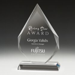 Elegant glass top crafted with wood base, the Omega presents an alternative award design with broad space for engraving. Excellent value for your presentation event.