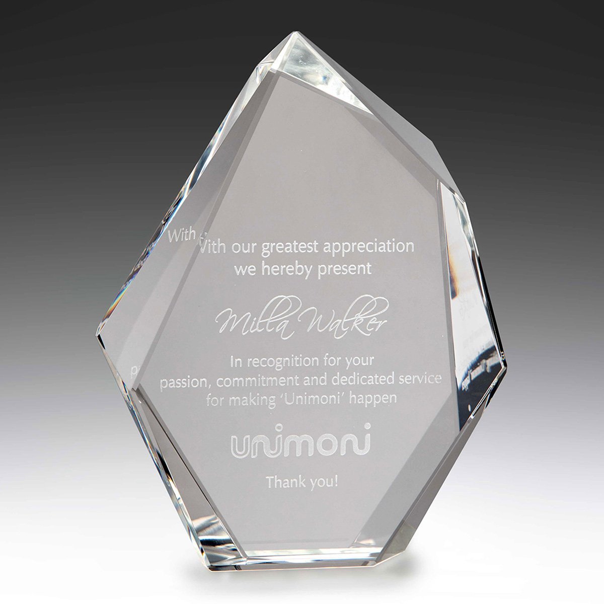 Smaller size crystal award with precise facet-like edges is suitable for more affordable budgets. The crystal award can be used with the more prestigious ‘Mountain’ series.