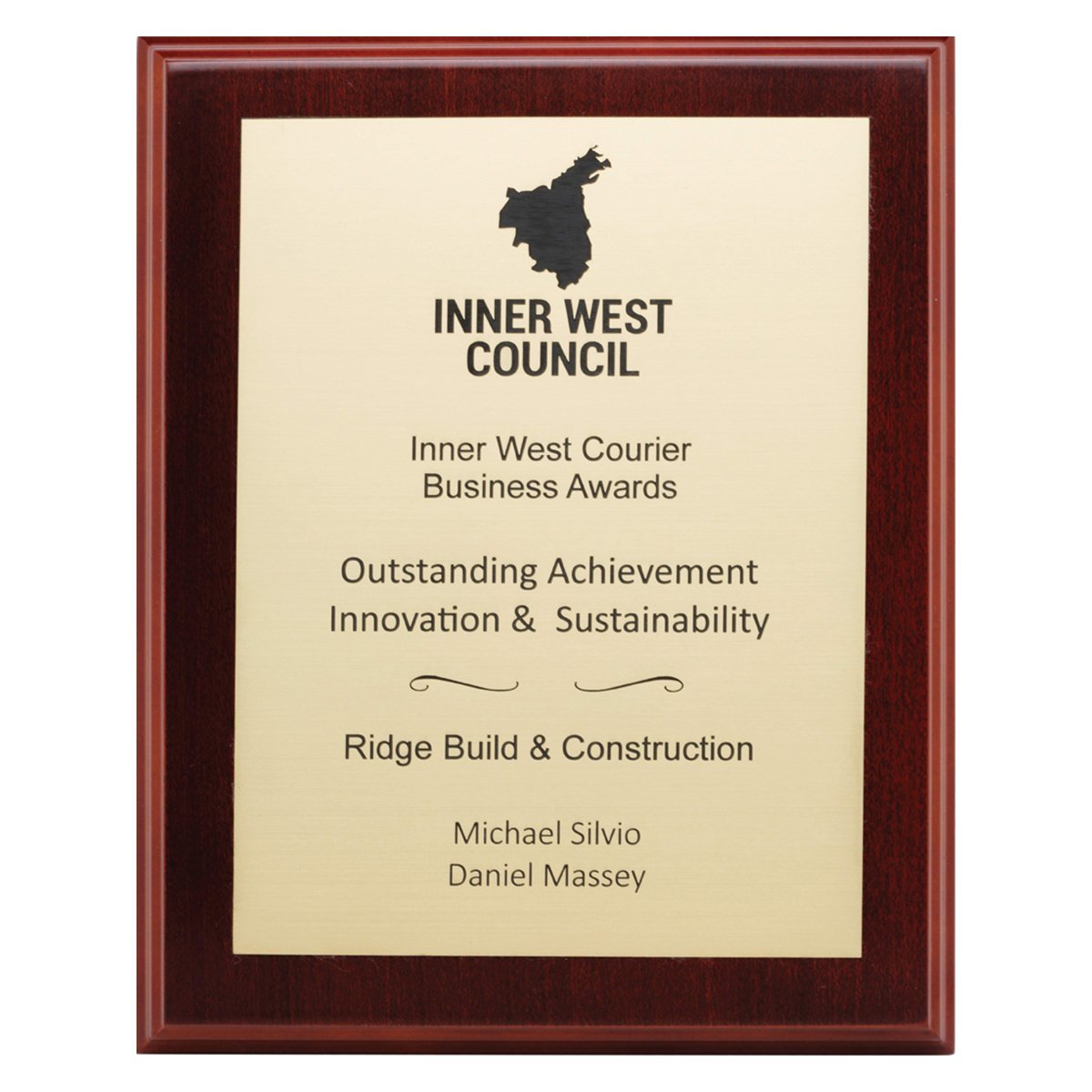 Classic timber plaque with European gold engraved plate. Choose colour of plaque and engraving material to best suit your engraving requirements.