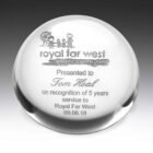 Domed crystal paperweight in gift presentation box. Classic and popular award option to recognise achievement and promote your company and organisation. Used at events and presentations.
