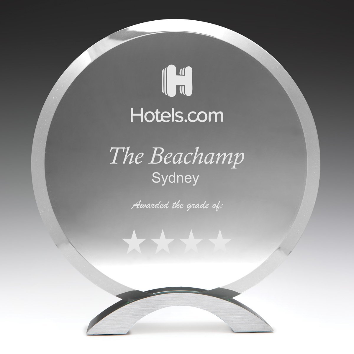 Circuit Award Chrome is a popular award choice. Glass circle atop the classic chrome base, well suited for your engraving requirements.