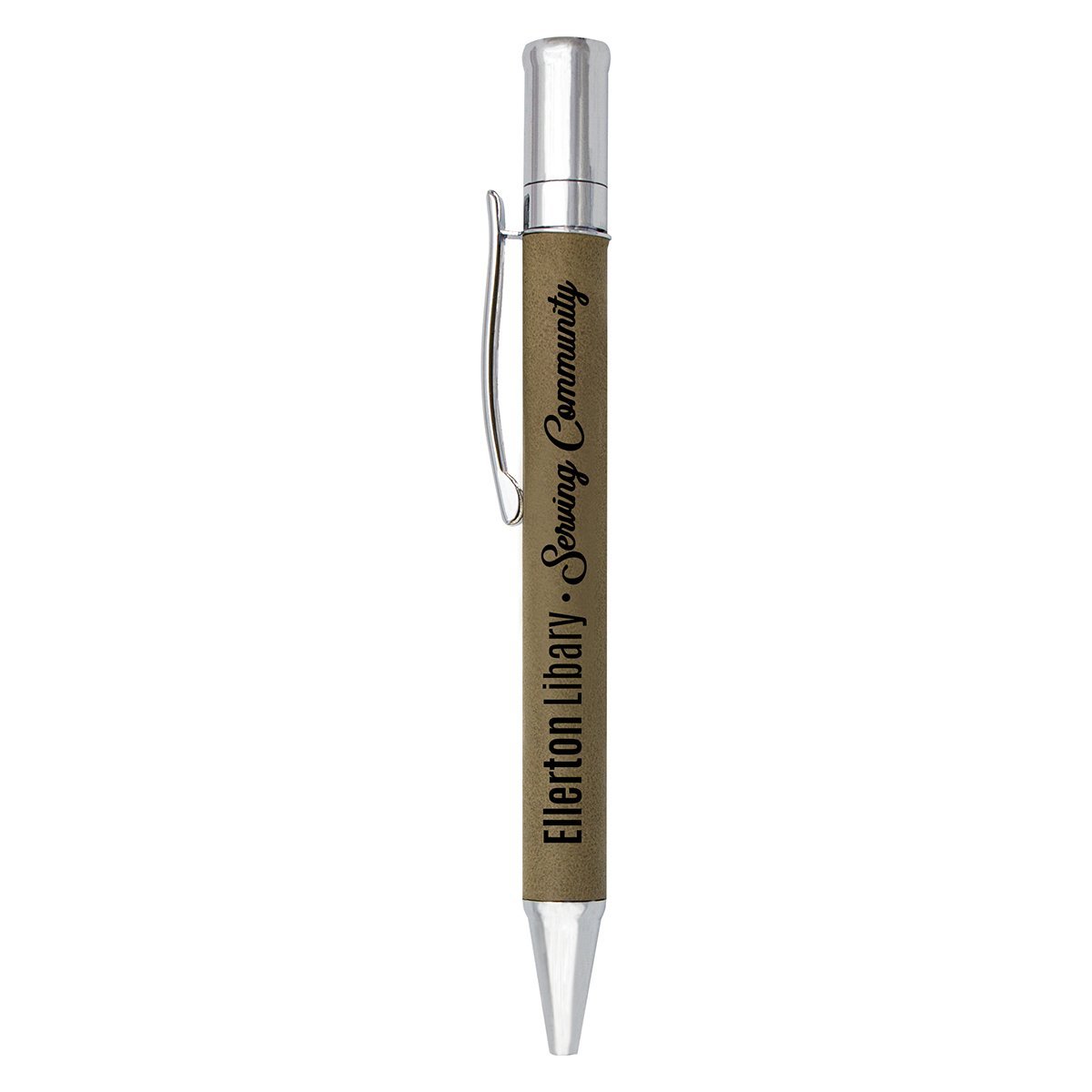 The diverse range of leatherette products offer different options for your engravable gift item. Leatherette allows for an affordable medium and durable engraving results. Single pen in rawhide colour and chrome trim finish.