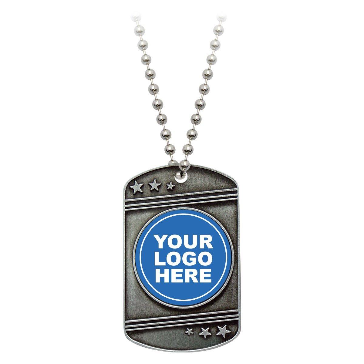 Charming tag to showcase your logo or sport – finished in classic antique silver. Space on the back for engraving. Fitted with silver metal chain for personal wear.