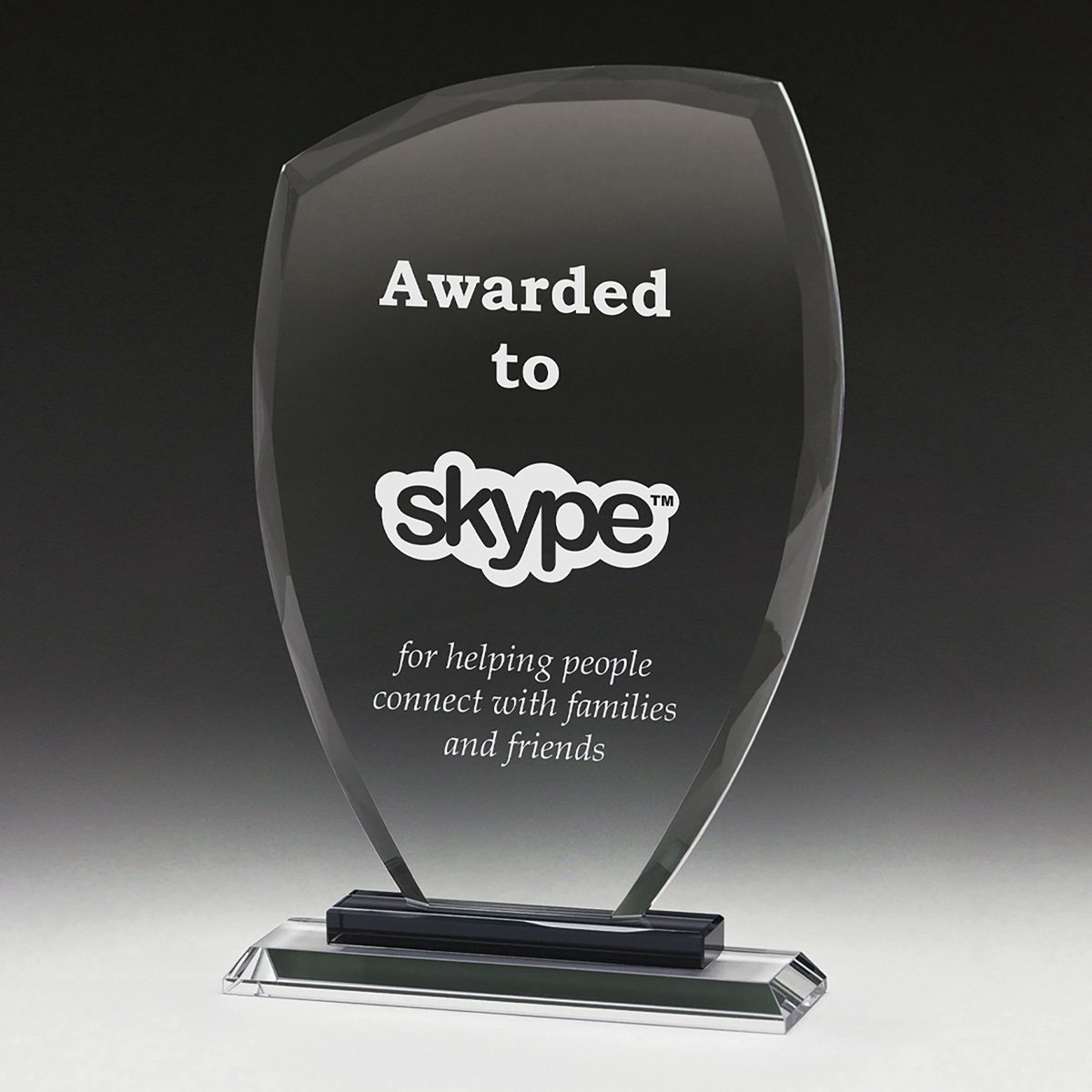 Elegant design of glass awards – available in 3 fantastic sizes – the Mission Peak features unique facet edges and the black base pedestal element adds extra interest to the design. A popular and reliable design to suit various budgets.