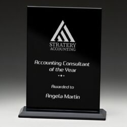 The Ohana series of budget glass awards offers an elegant wave inspired design with an appealing shiny blue & silver panel. Central space for your engraving.