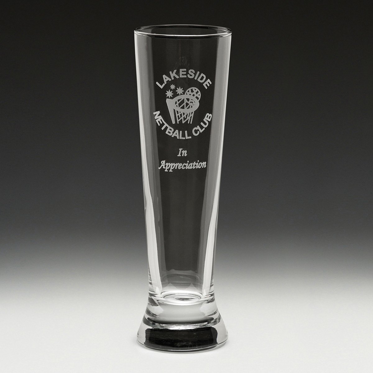 Pilsner glass part of the range of premium glassware and stemware on offer. A popular and traditional engravable award and gift idea particularly suited to recognise the achievements of your sporting club or team.