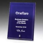 The Prime Glass Plaque series is a prestigious award option presented in a premium gift box. Blue plaques available in 3 convenient sizes present a universal award to show off your engraving.