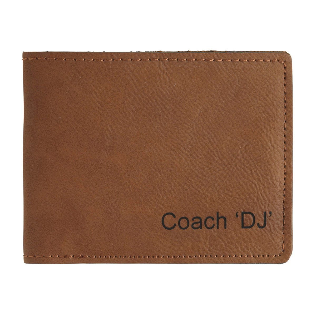 The diverse range of leatherette products offer different options for your engravable gift item. Leatherette allows for an affordable medium and durable engraving results. Rawhide wallet provides a usable gift or award with space for your engraving requirements.